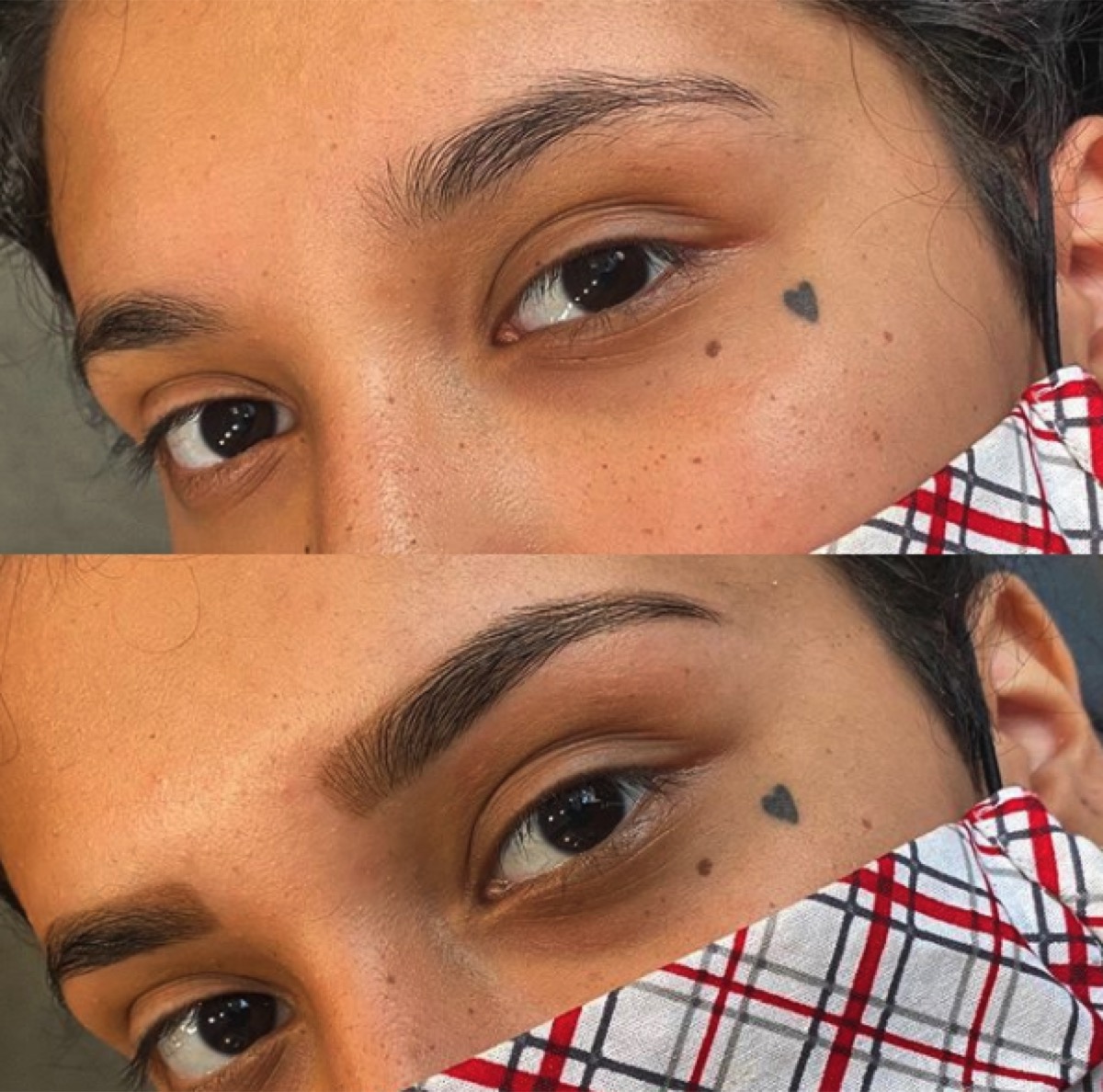 We recommend keeping your brows completely dry for at least 24 hours after the treatment. Avoiding water, steam, and heavy skincare products in the brow area during that window helps the stain set fully.